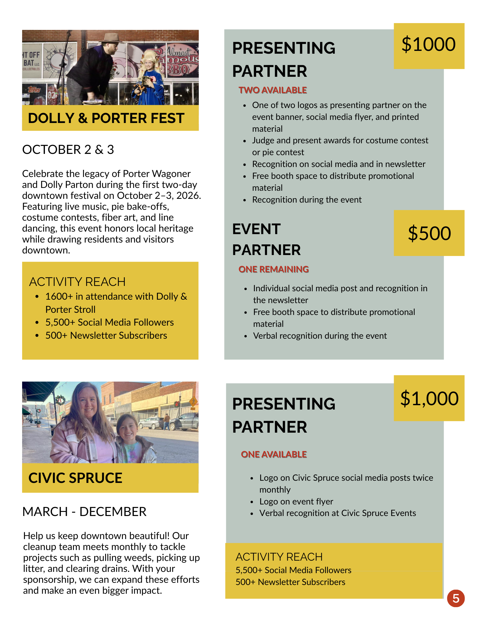 Sponsorships help us create experiences that bring neighbors together, energize our local businesses, and celebrate the character of our historic downtown. When you support these initiatives, you’re not just funding an event—you’re contributing to a place we all care deeply about.