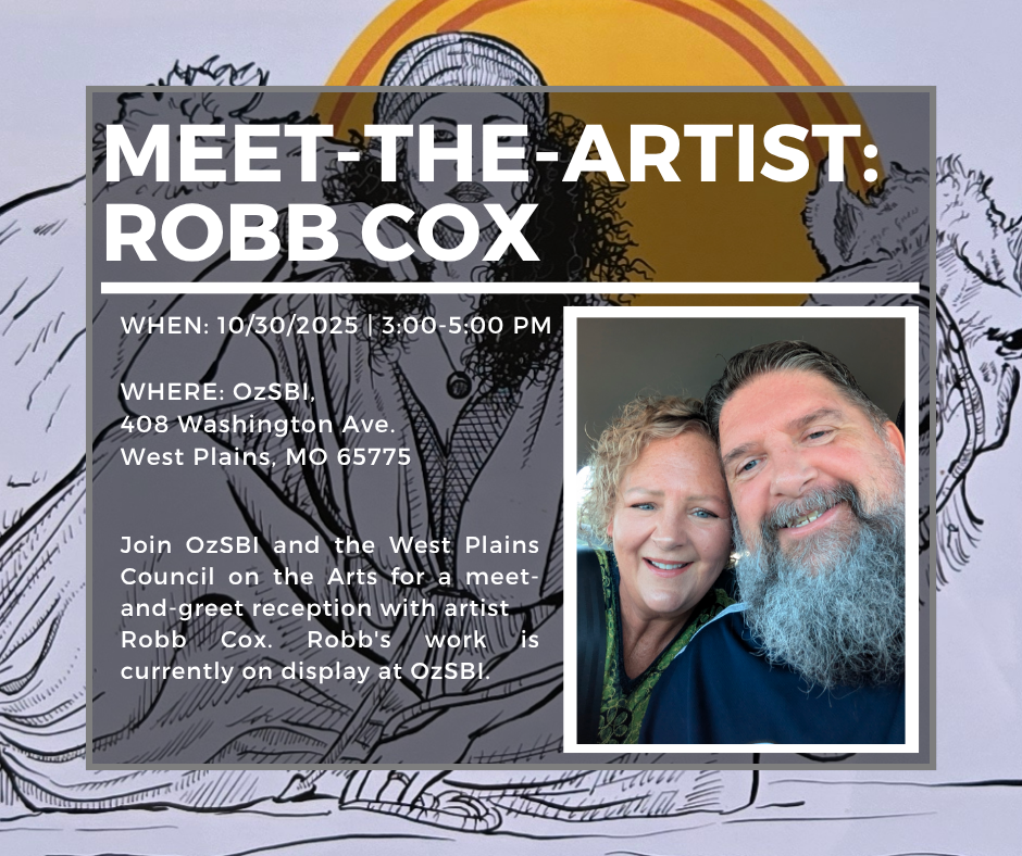 Join OzSBI and the West Plains Council on the Arts for a meet-and-greet reception with artist, Robb Cox. Robb's work is currently on display at OzSBI.